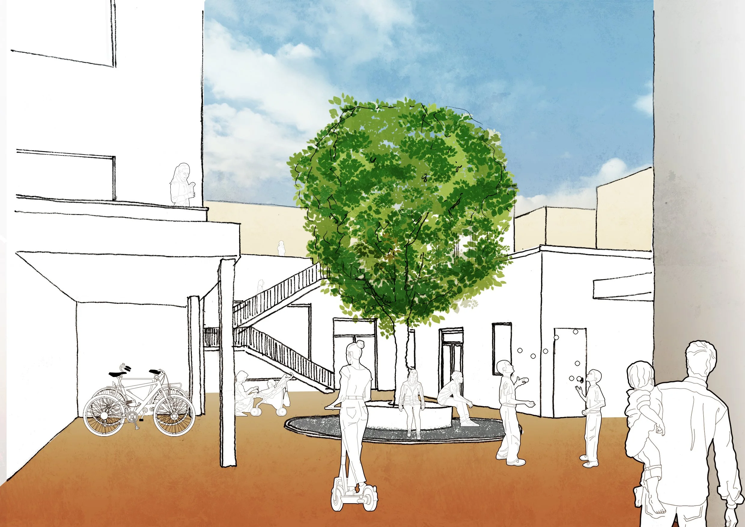 Wir haben uns bis 2035 große Ziele gesetzt. Durch Sanierung, Aufstockung und Ausbau des Daches beider Häuser schaffen wir ca. 700 qm neuen Wohnraum. Außerdem werden im Rahmen dieses Umbaus alle vorhandenen Wohnungen modernisiert, sofern möglich inklusionsgerecht saniert und die Strukturen der Vermietung zukunftsorientiert neuorganisiert.